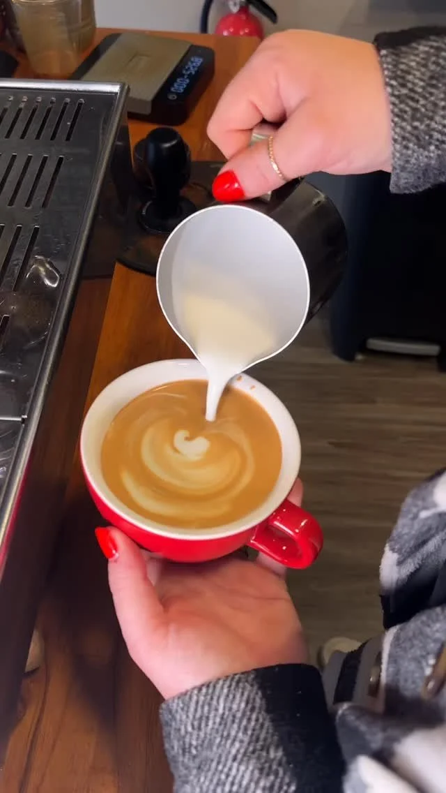 One of our baristas pouring latte art