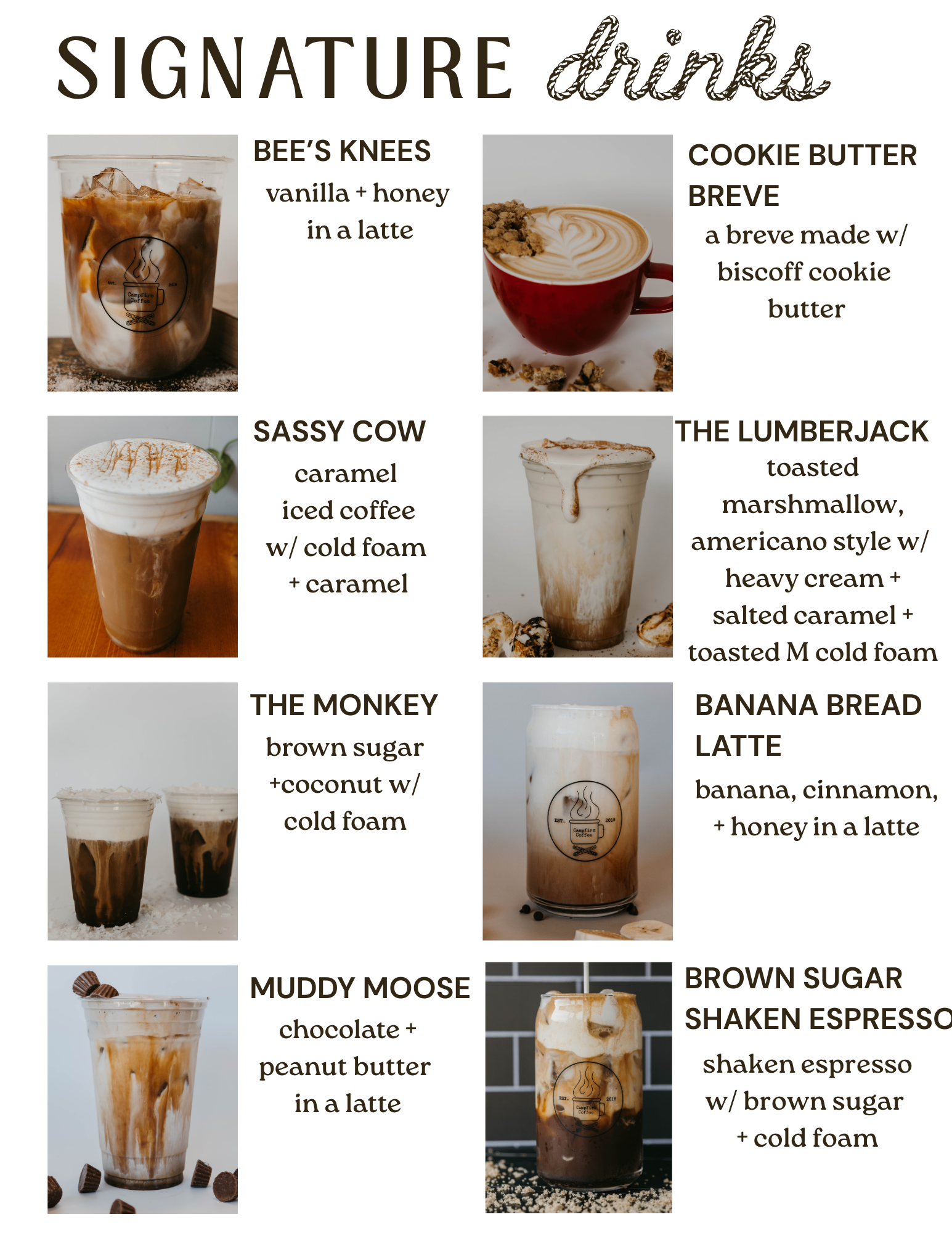 campfire coffee drink menus